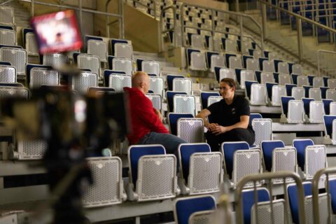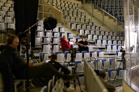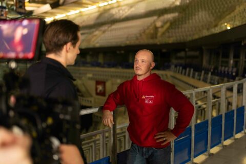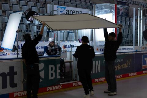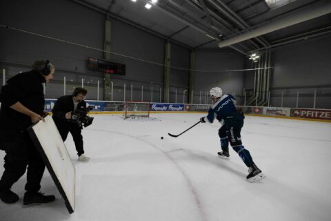 We filmed with him at the home of the Adler Mannheim in the SAP Arena, capturing moments around his training and preparation within the arena environment. The aim was to portray the intensity, discipline, and mindset behind his journey as a professional athlete.