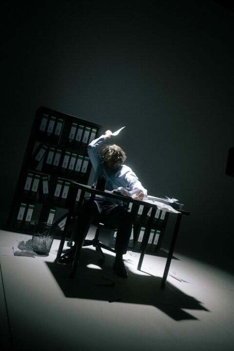 The film follows a protagonist trapped in an abstract office environment, repeating the same mechanical routine in a seemingly endless cycle. The sterile, controlled setting gradually intensifies as the monotony becomes unbearable, ultimately culminating in a complete emotional breakdown.